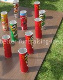 Attach empty Pringles tubes painted a bright colour to a large sheet of hardboard. Weight them with a bit of sand in the bottom of each.